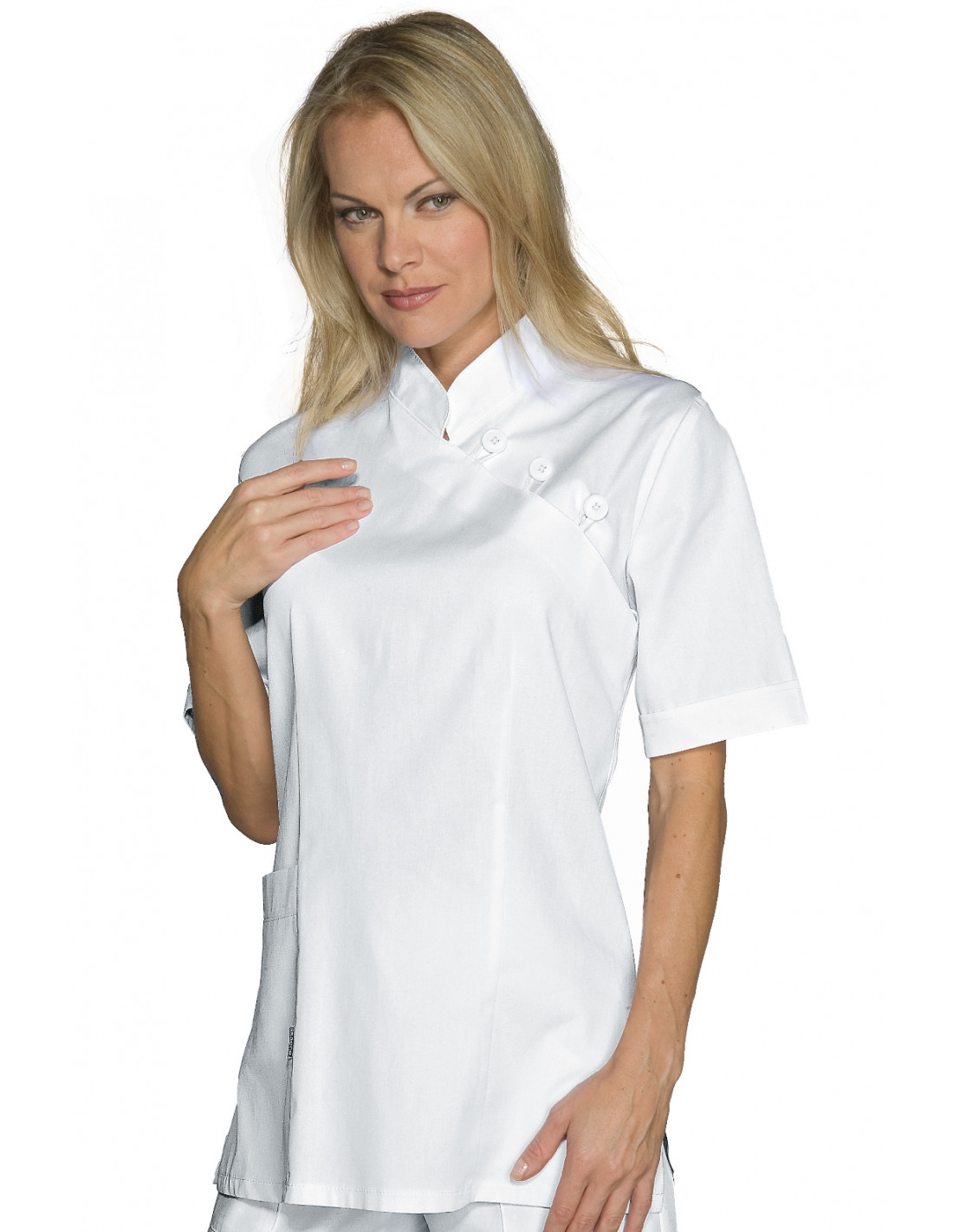 La Casacca Taipei è una camicia a mezza manica bianco. Per settore medico estetico e sanitario. Utilizzata come divisa per dentista. Una tasca applicata a destra e abbottonatura laterale.