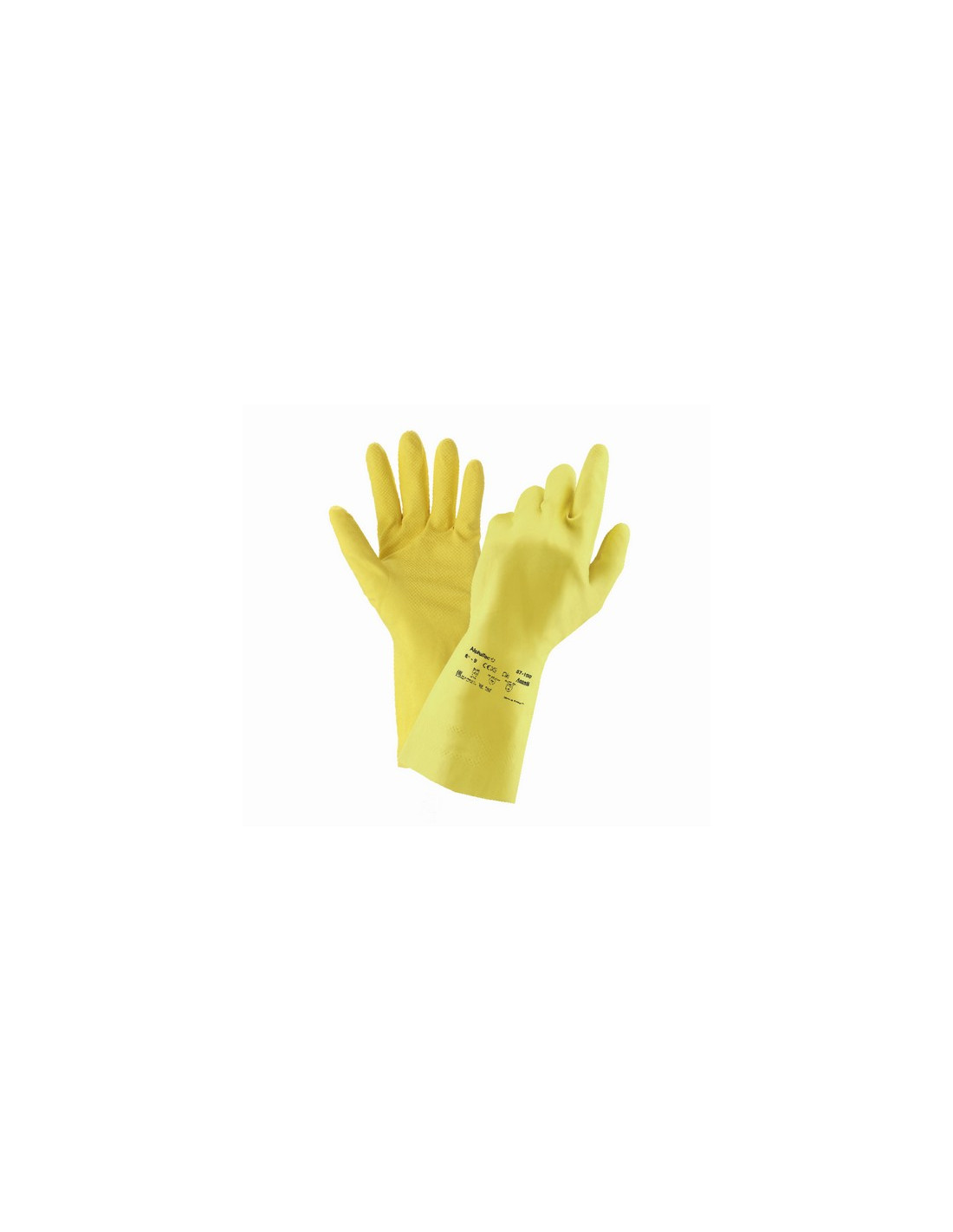 Guanto in lattice naturale per rischi minori, felpato all'interno, finitura a scaglie di pesce per maggiore presa, spessore +/- 0,35 mm, lunghezza mm290. APPLICAZIONI: pulizie e lavaggi in genere. III^ Categoria | Indice meccanico: 1010X