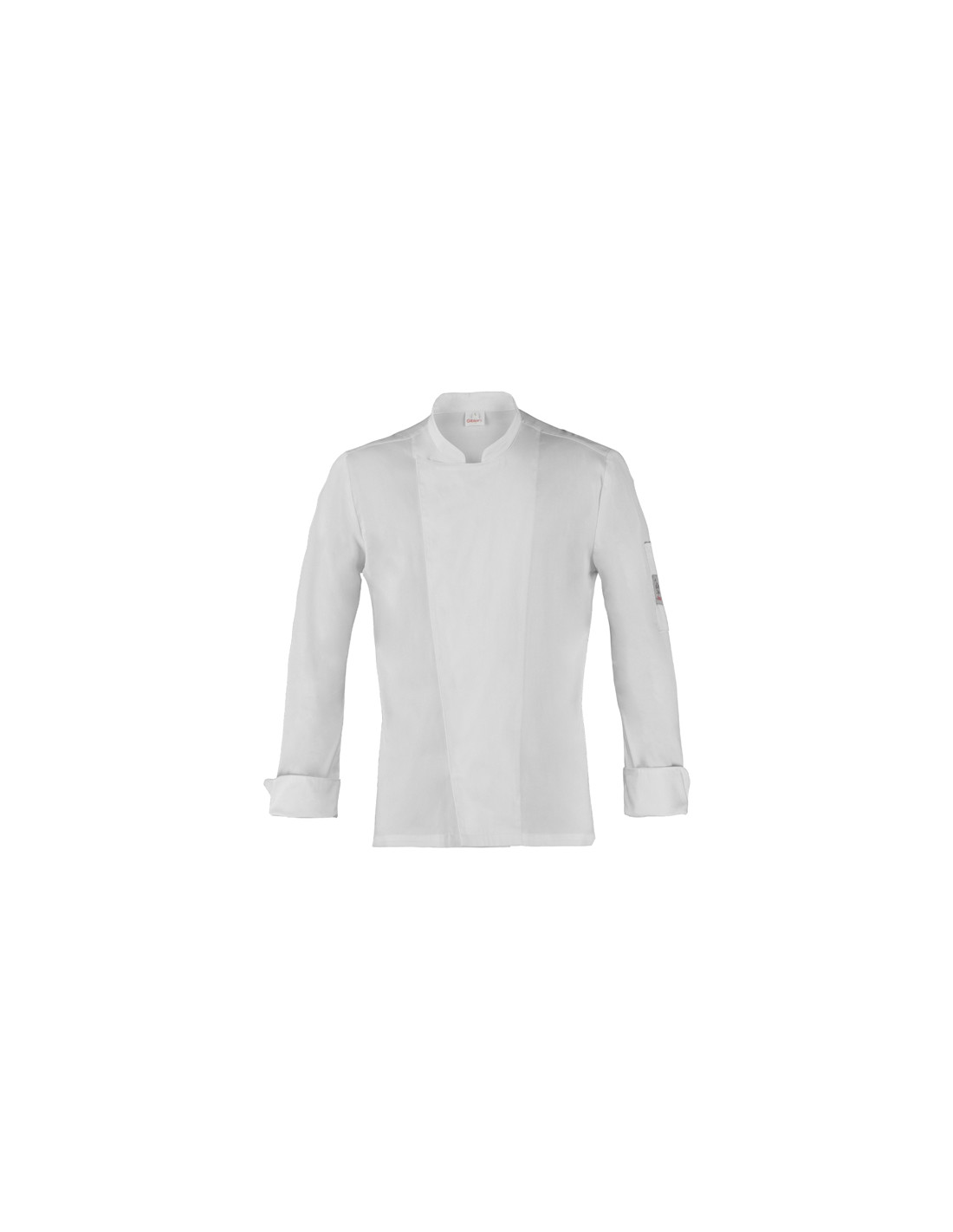 La giacca Augustin è un capo di punta della collezione Essential: realizzata in cotone elasticizzato, che facilita il movimento, ha una mano morbida, molto apprezzata dai clienti per la sensazione di confort quando indossata. Presenta una vestibilità Slim Fit, caratterizzata da due tagli sagomati sul retro, un porta penne sulla manica sinistra e il collo classico coreano, seguito dall’abbottonatura doppio petto con automatici nascosti. Augustin è proposta nei colori bianco e nero ed ha la sua variante femminile nella giacca Celine.