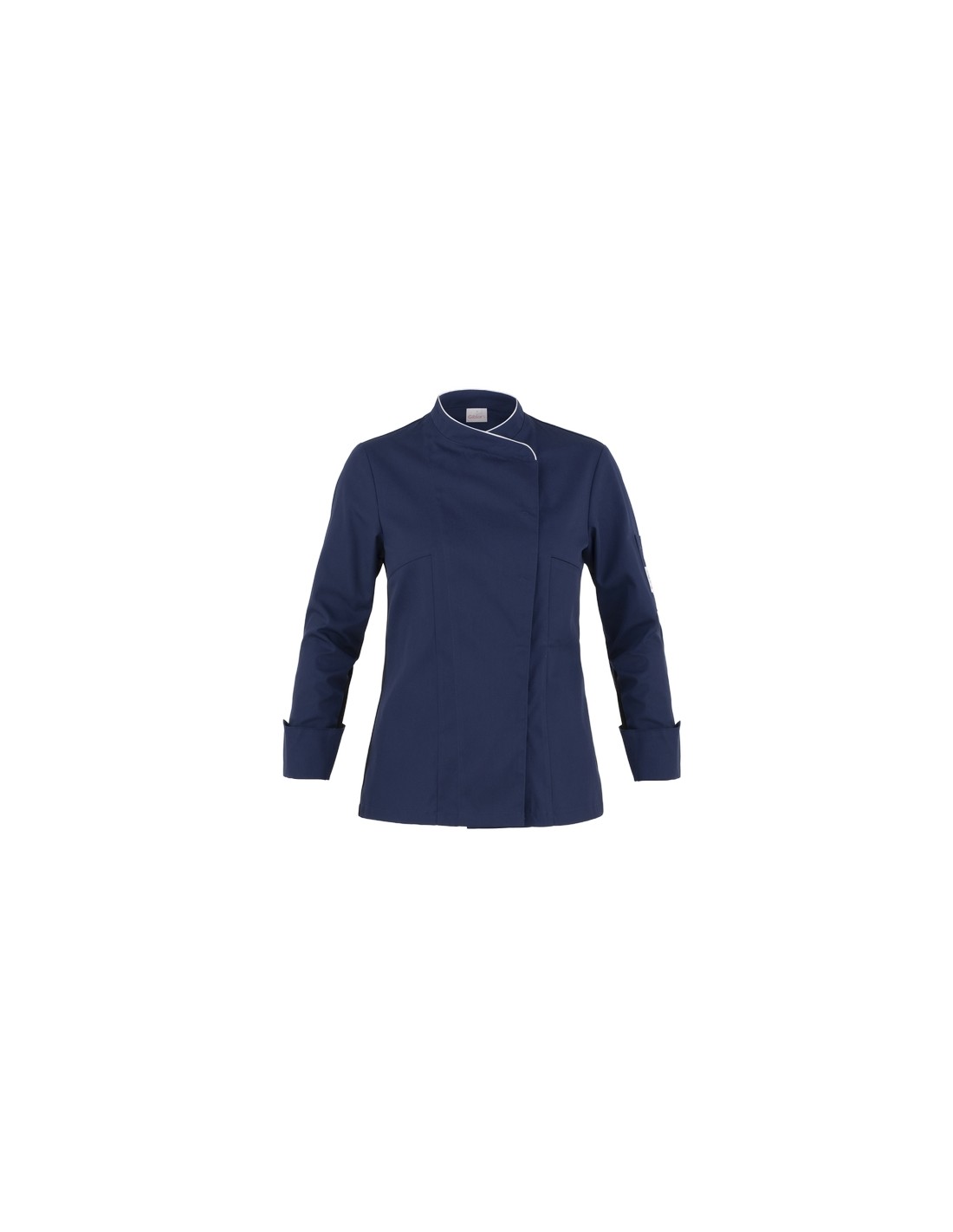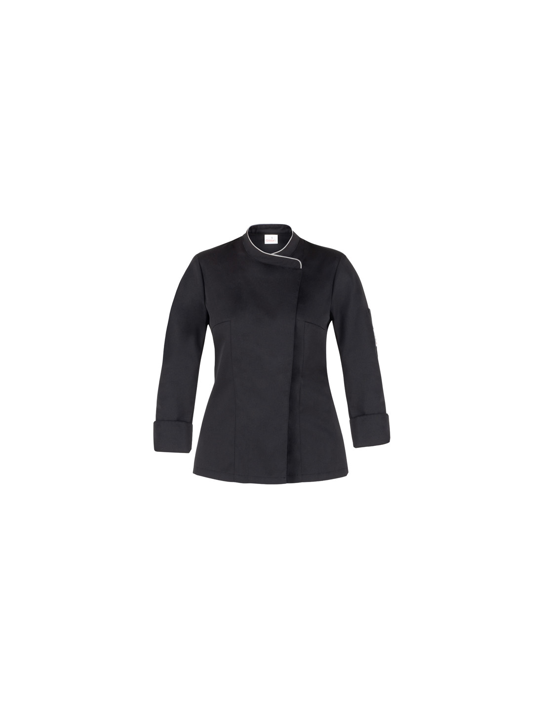 La giacca Susi è un capo dall’impronta classica, rivisitato in chiave contemporanea, grazie ai due tagli laterali in maglia di piquet, che sagomano il retro, conferendo alla giacca una vestibilità Slim Fit e assicurando il massimo confort nei movimenti. Il capo presenta il collo alla francese, l’abbottonatura rigorosamente nascosta, il taschino sul petto e il portapenne sulla manica. Nel collo è inserito il classico piping. Susi è proposta in bianco con piping grigio perla o tricolore, e in nero con piping grigio perla, e ha la sua variante maschile nella giacca Patrizio.