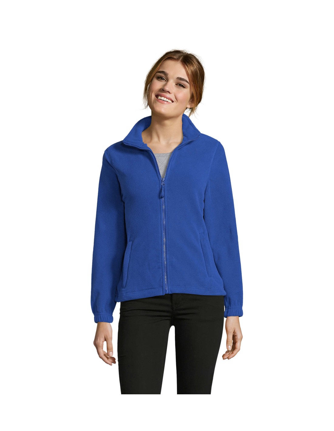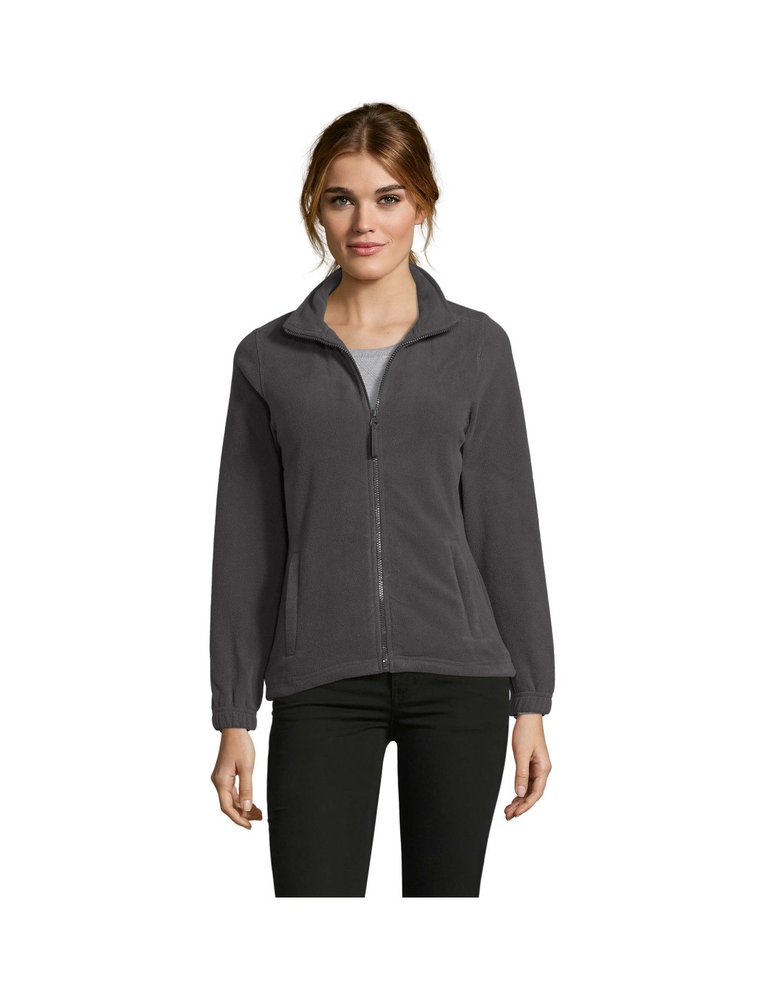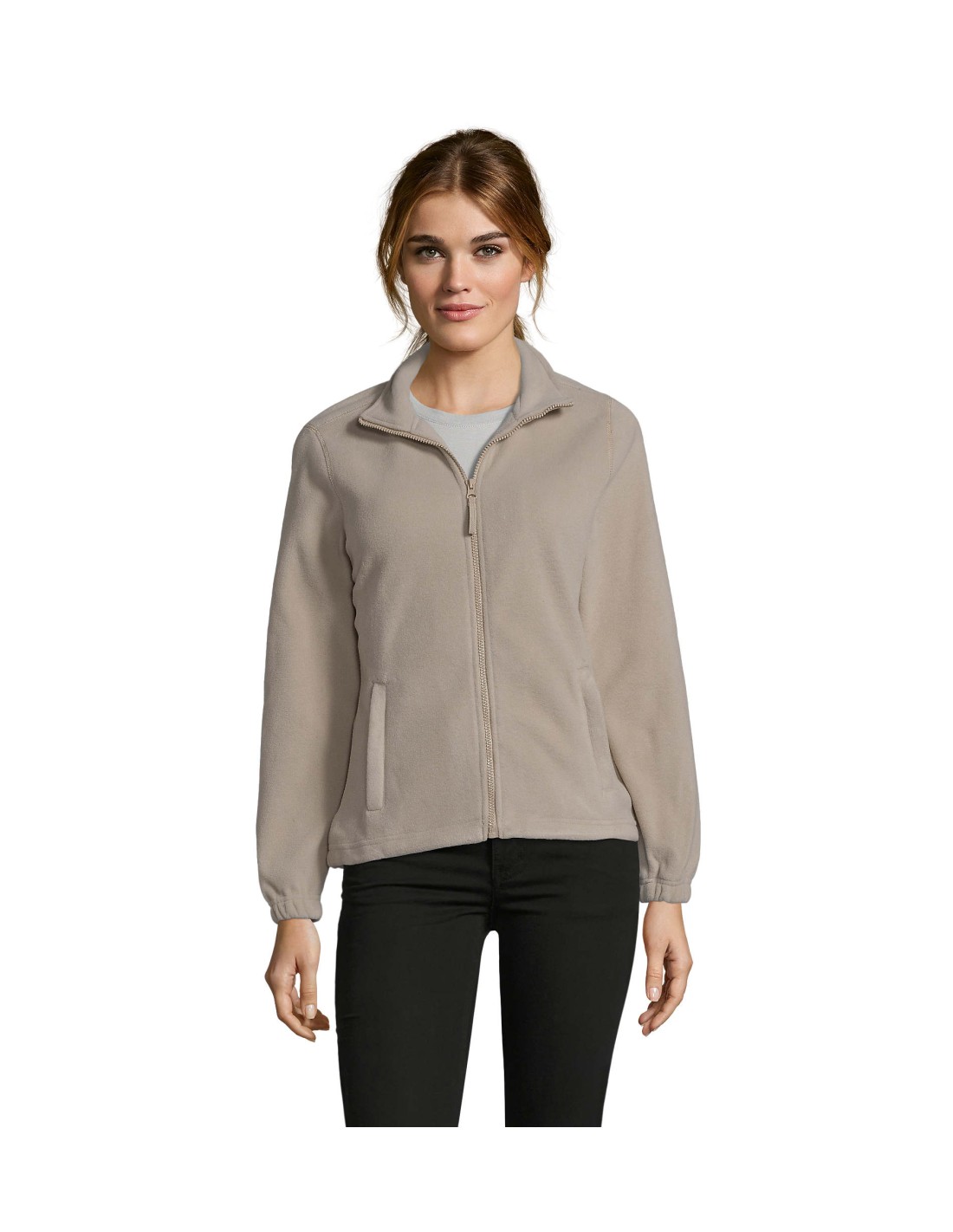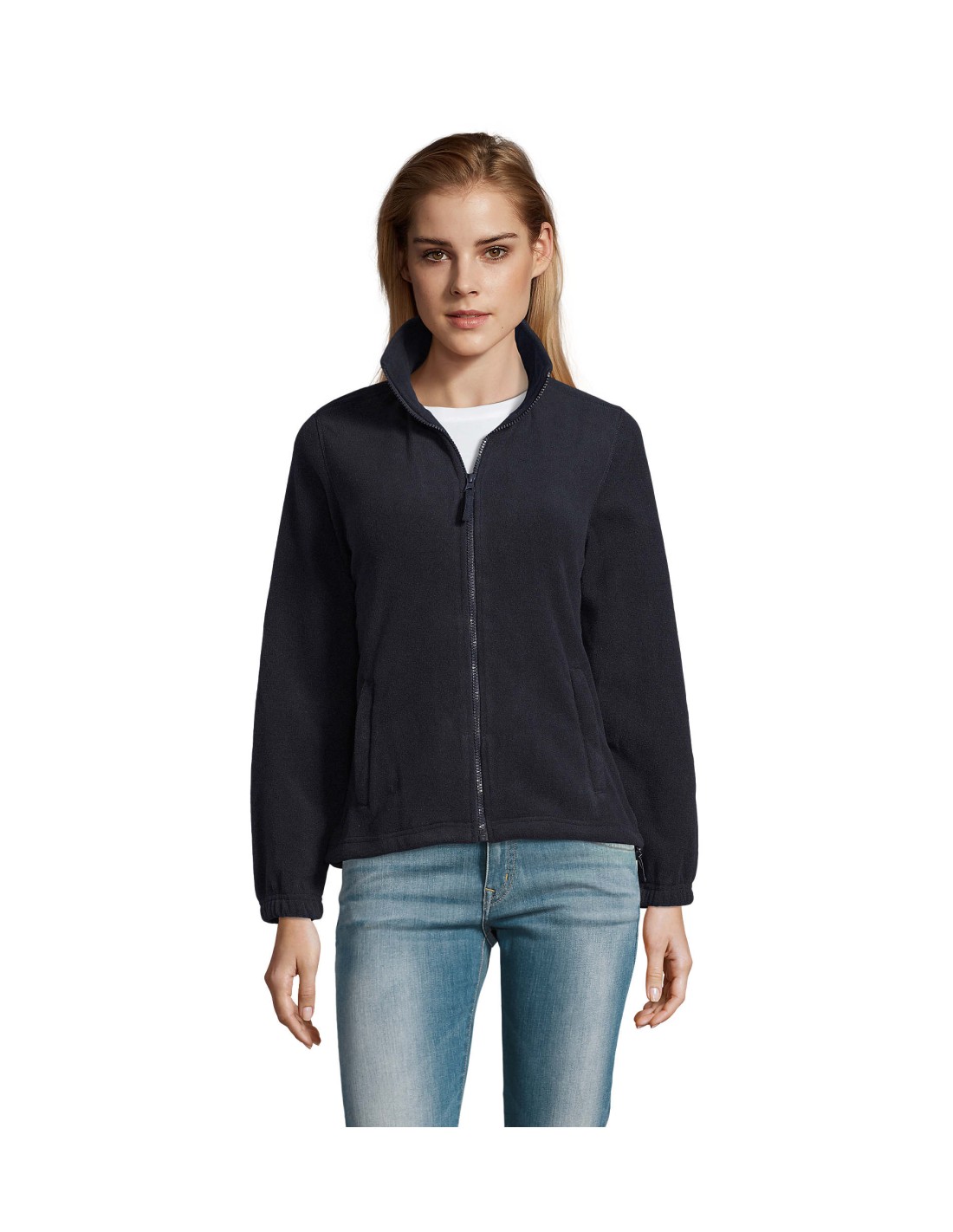 Taglio classico Anti-pilling Nastro di rinforzo sul collo Collo raddoppiato 2 tasche con zip con cursore Taglio corto Polsini elasticizzati Mezzaluna sul dorso Fondo con coulisse elastica e ferma cordino.