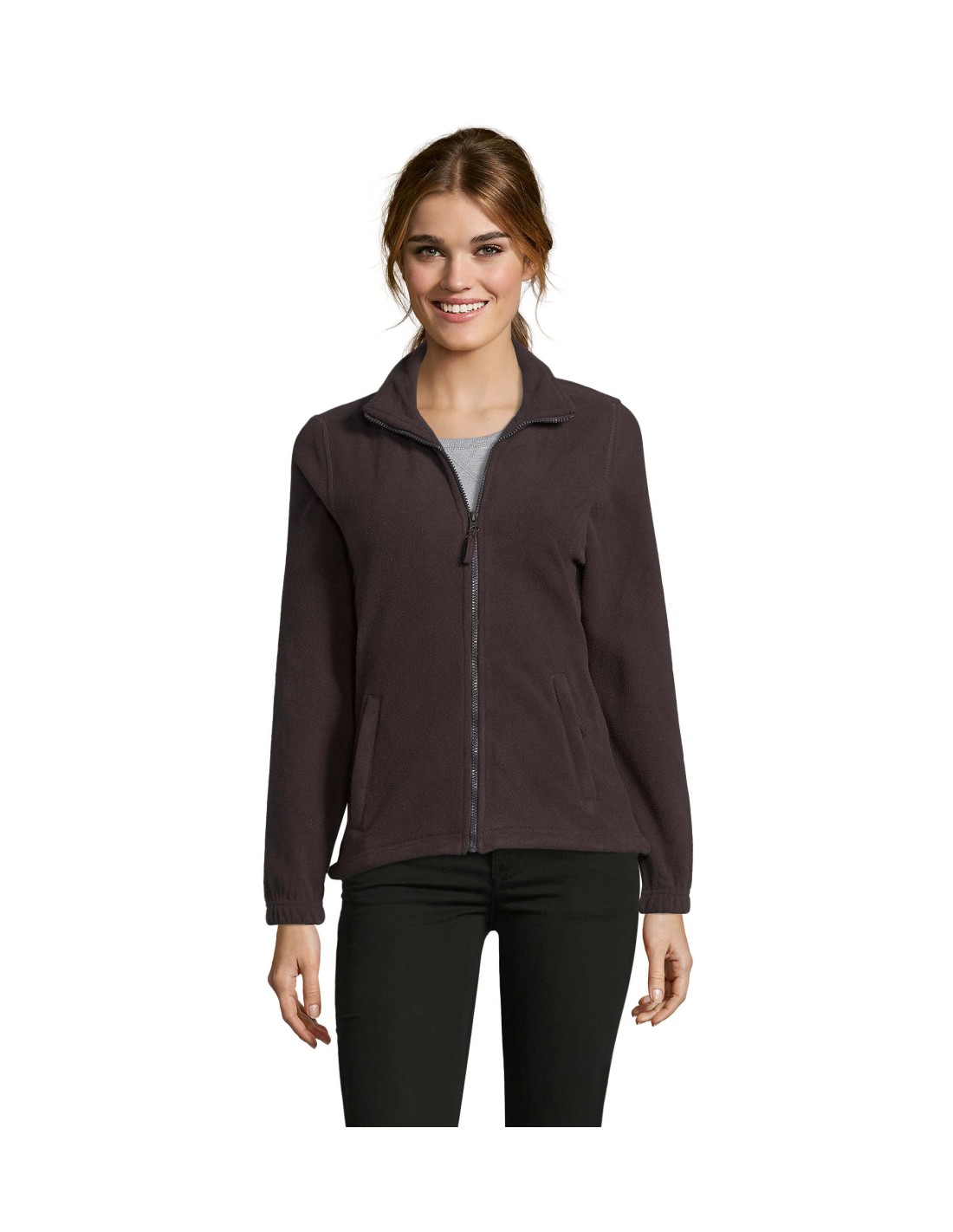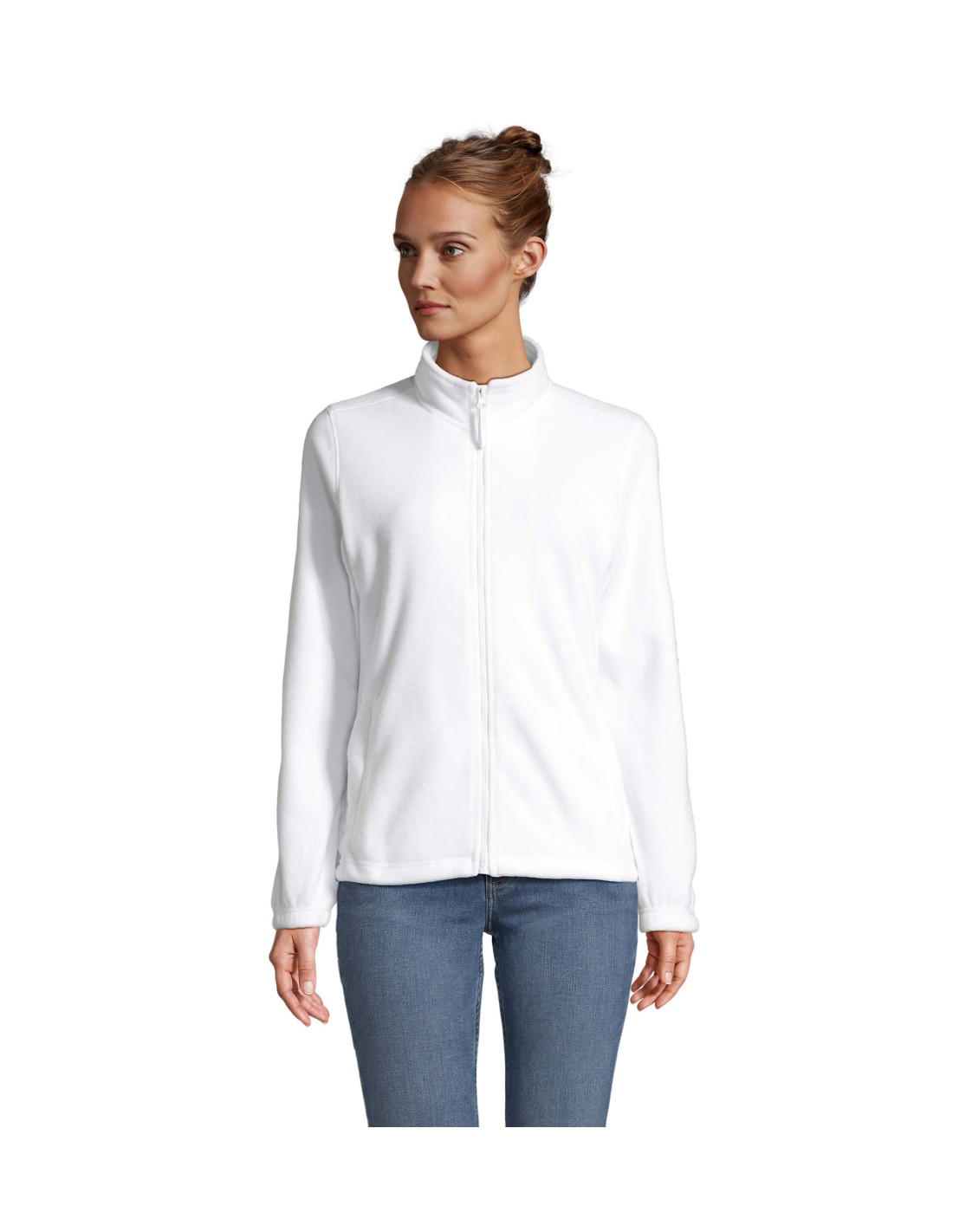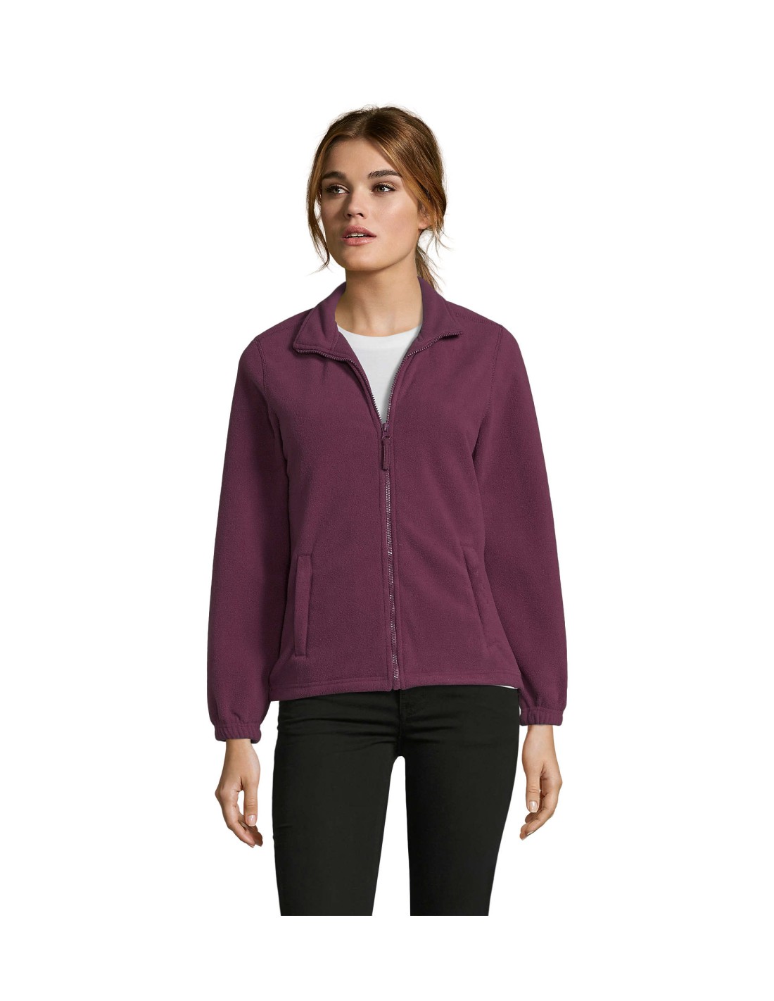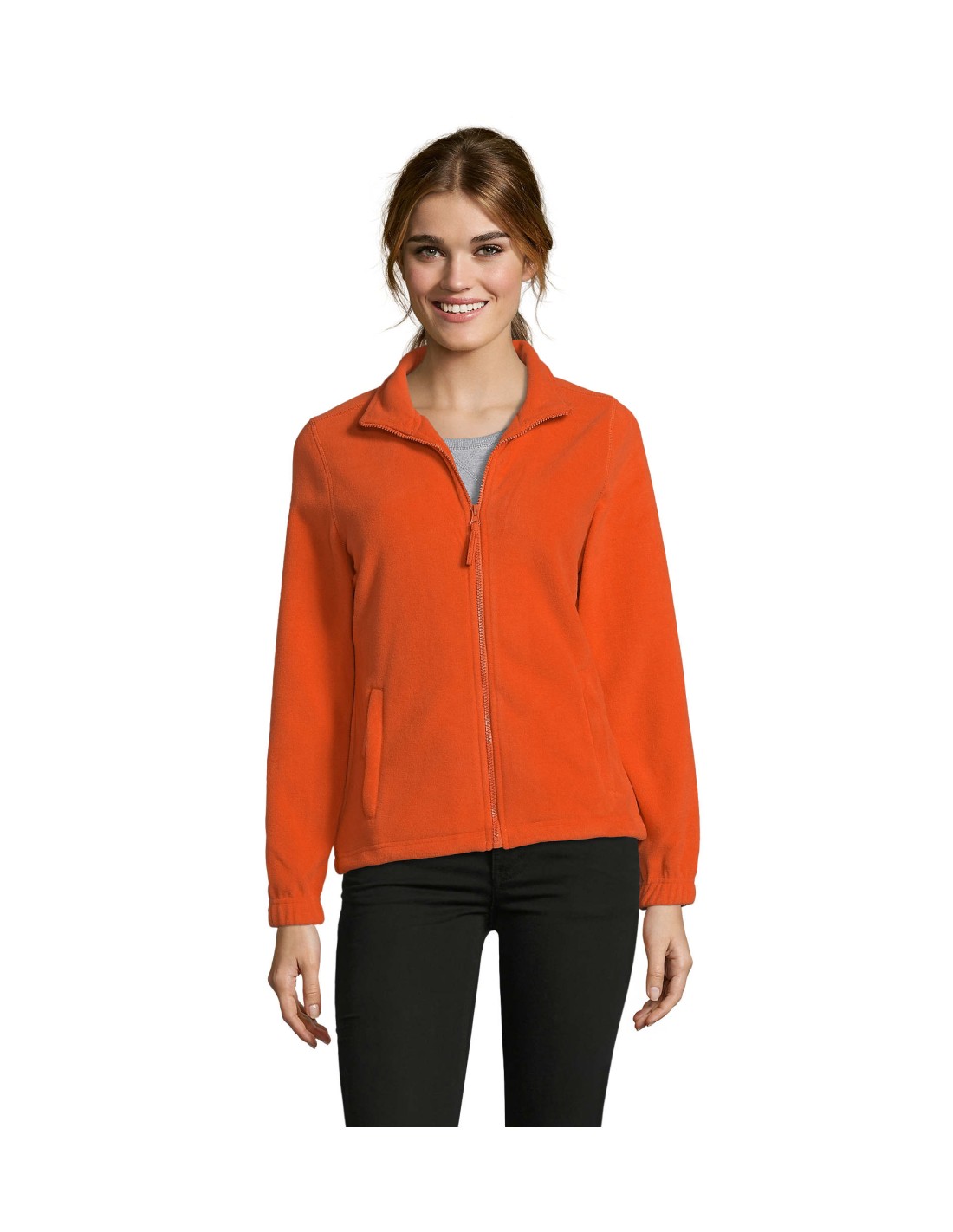 Taglio classico Anti-pilling Nastro di rinforzo sul collo Collo raddoppiato 2 tasche con zip con cursore Taglio corto Polsini elasticizzati Mezzaluna sul dorso Fondo con coulisse elastica e ferma cordino.