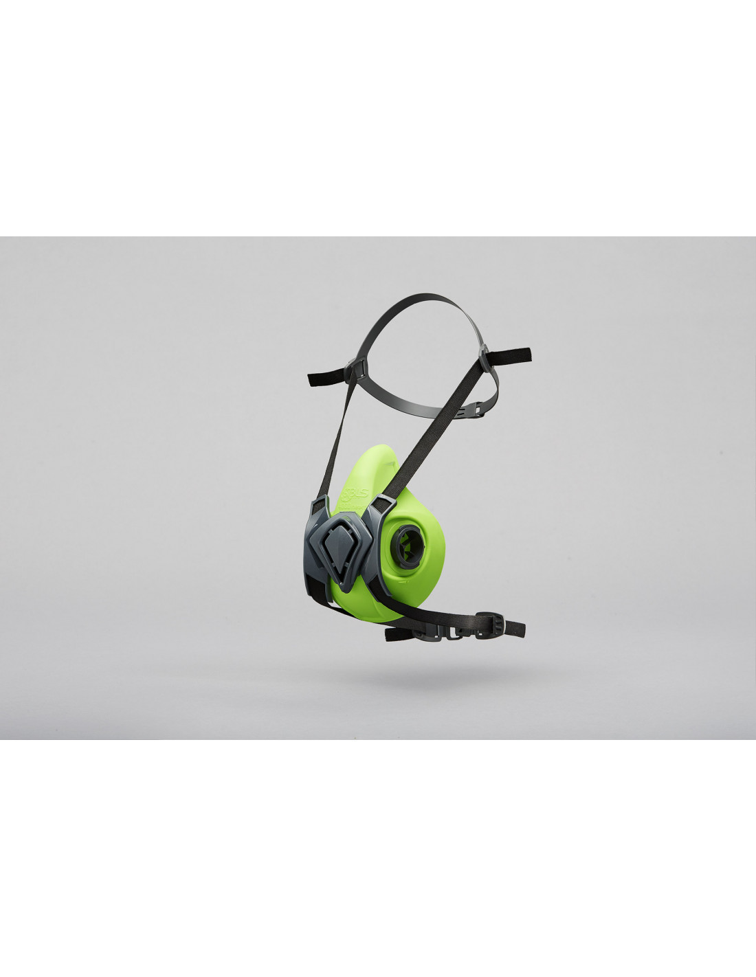 Sistema di aggancio/sgancio rapido ed elastici scorrevoli, che permettono di togliere ed abbassare la semimaschera senza rimuovere la testiera.Regolazione rapida, che permette un’ottima compatibilità con altri DPI.