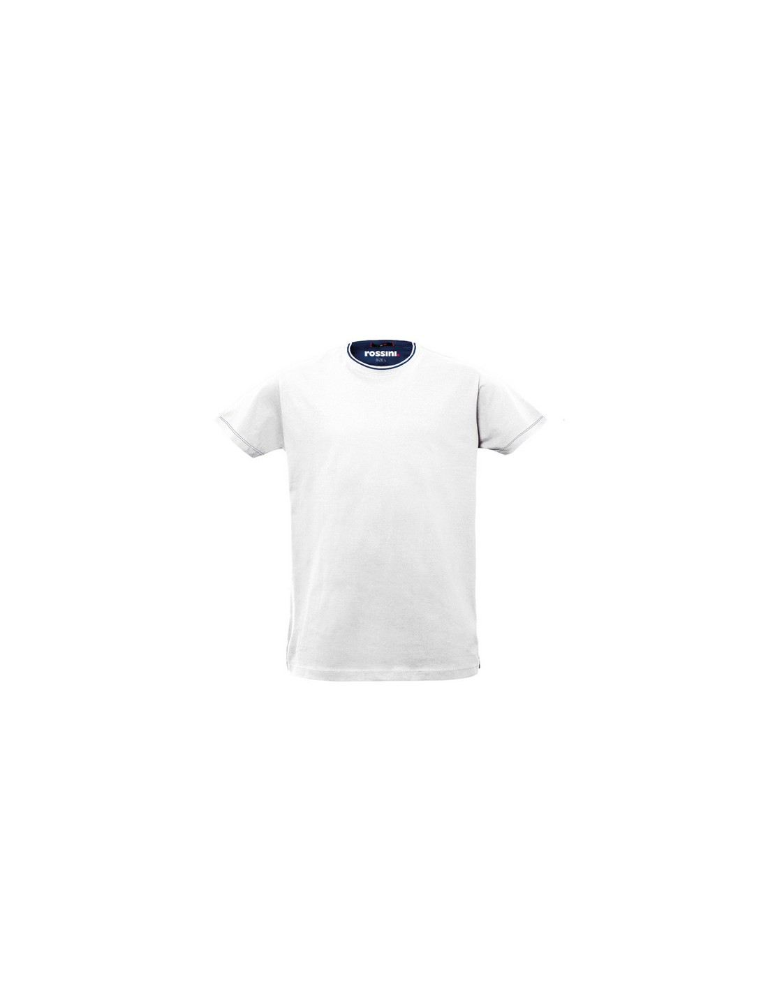T-Shirt mezza manica con fascia parasudore e lunetta di colore a contrasto nella parte posteriore del collo, girocollo a costine con profilo di colore a contrasto, doppia cucitura di colore a contrasto al giromanica, sulle spalle e posteriore al collo.